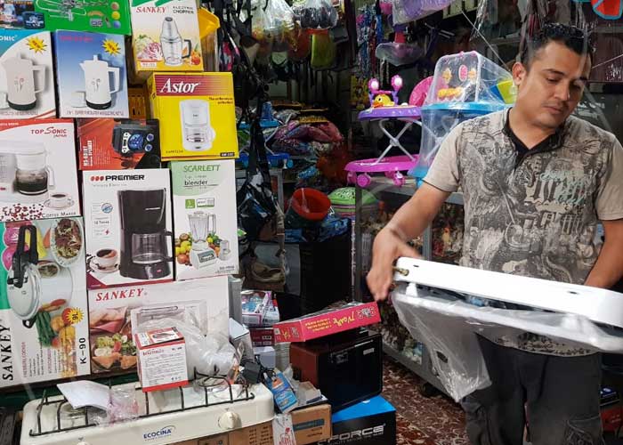 Para los meses que se acercan los nicaragüenses también se preparan para adquirir electrodomésticos, en este mercado hay tramos abarrotados con microondas, cocinas, planchas, lavadoras, todo lo referente a la línea blanca y artículos para el hogar como abanicos, sillas, adornos y vajillas.