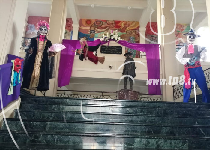 La embajada de México en Nicaragua compartió esta tarde sus tradiciones en el día de los difuntos, participaron representaciones de los departamentos de Masaya, Granada, León y Managua, el acto se realizó en el Palacio Nacional de la Cultura, donde se instaló un altar a como es tradición en el país azteca
