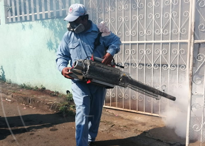 Con el objetivo de evitar el zancudo transmisor del dengue, zika y chikungunya, brigadistas del Ministerio de Salud (MINSA), fumigaron las viviendas del barrio Francisco Meza en Managua para de esa forma vivir sano.