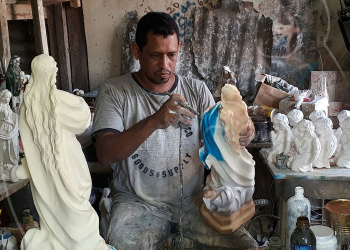 En el barrio San Luis Sur, de Managua, Harold José Talavera y su familia están trabajando en la elaboración de las imágenes de la Virgen María, porque previo a la gran celebración de La Purísima la demanda de las familias que durante diciembre rinden homenaje a la madre de Dios aumenta.