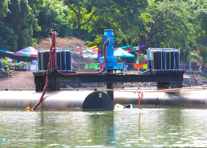 La Alcaldía de Managua (ALMA), a través de la Dirección General de Medio Ambiente, este jueves realizó el lanzamiento del sistema de aireación y ventilación en la Laguna de Tiscapa.