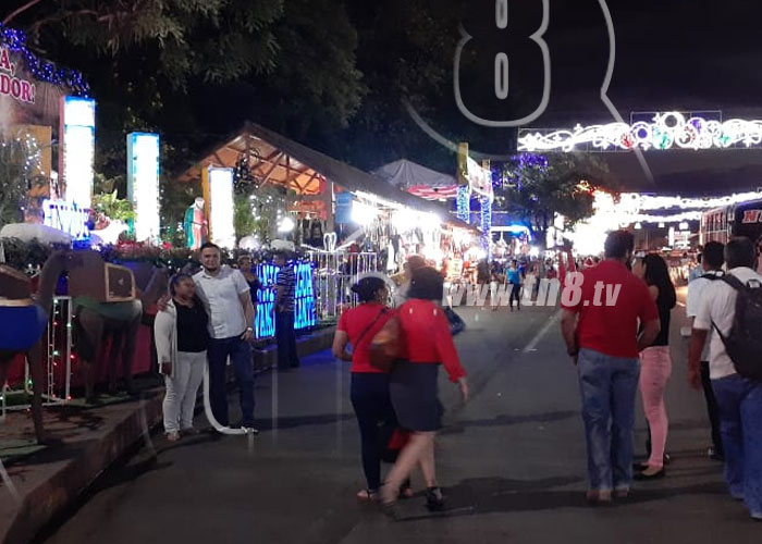 La avenida de Bolívar luce muy concurrida por la exposición de los diferentes nacimientos, atracciones originales que disfrutan los nicaragüenses al caminar en este espacio tranquilo y seguro.