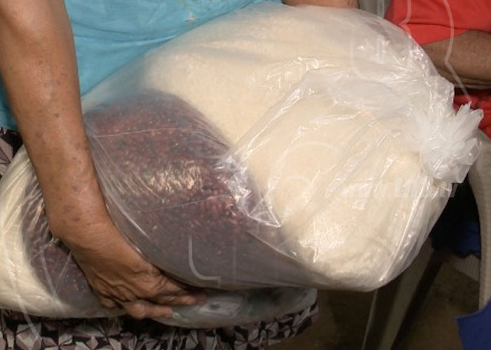 "Trae arroz, frijoles, diferentes tipos de pastas, avena, azúcar, café, todo para la comidita, contenta; me cae bien cada vez que viene, le agradezco primeramente al Señor después al comandante Daniel Ortega y la compañera Rosario Murillo", dijo Ruiz.