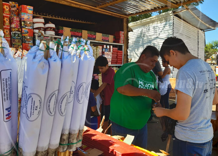 "Si ya los estamos ofreciendo, les pedimos vengan a comprar, los grandes son mas caros porque llevan mas pólvora pero les ofrecemos de todos los tamaño", citó María Mercedes Duarte.
