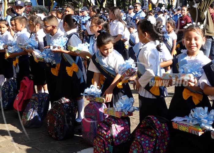 Hijos de oficiales de policía recibieron paquetes escolares en Managua
