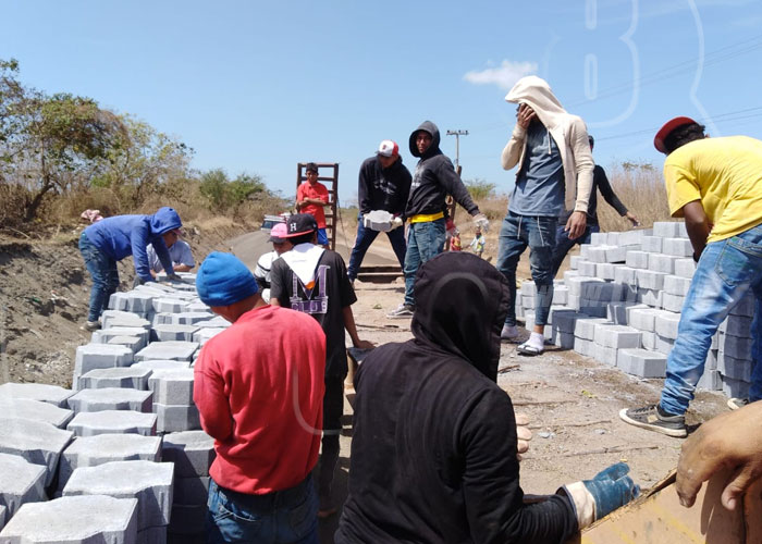 La alcaldía de Tipitapa realiza obras de adoquinado, andenes y cunetas en el camino a San Juan de la Plywood, y la mañana de este miércoles iniciaron a la colocación de los adoquines.