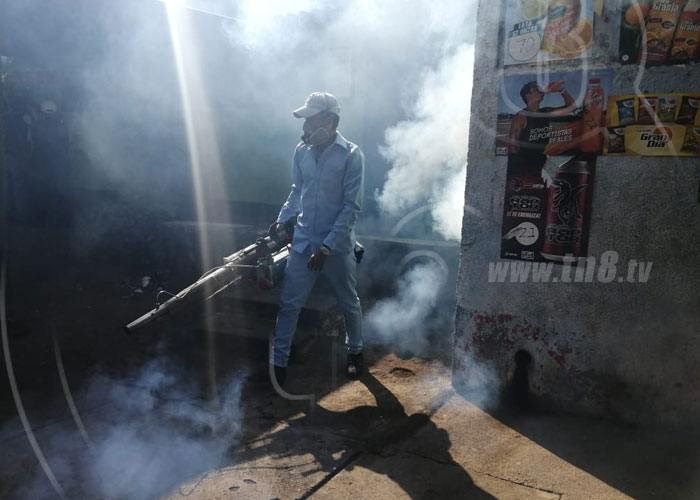 Una intensa jornada de fumigación el Ministerio de Salud realizó en un barrio de Managua este martes, como parte de la campaña permanente de la eliminación de criaderos del zancudo adulto, que transmite enfermedades vectoriales como zika, dengue y chikungunya.