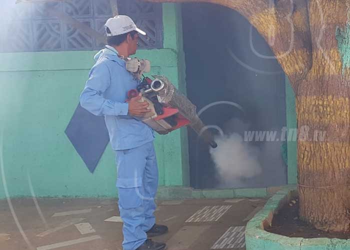 Las brigadas de lucha contra las epidemias se sumaron a la labor permanente de erradicación del mosquito adulto, con la fumigación en todos los hogares del barrio Grenada, en el Distrito V de Managua.