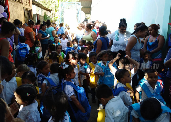 Durante todo el día de este jueves 27 de febrero, autoridades del Ministerio de Educación, directores de colegios y maestros, entregan paquetes escolares a los estudiantes de preescolar comunitario y preescolar de los colegios públicos de Tipitapa.
