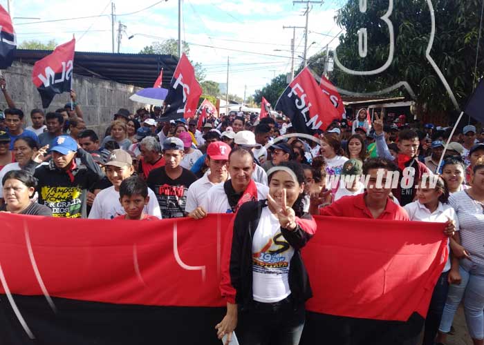 La militancia sandinista manifestó su respaldo y al Comandante Daniel Ortega y a la Rosario Murillo, durante la caminata, los jóvenes entonaron consignas alusivas al Frente Sandinista y de respaldo al presidente Daniel Ortega.