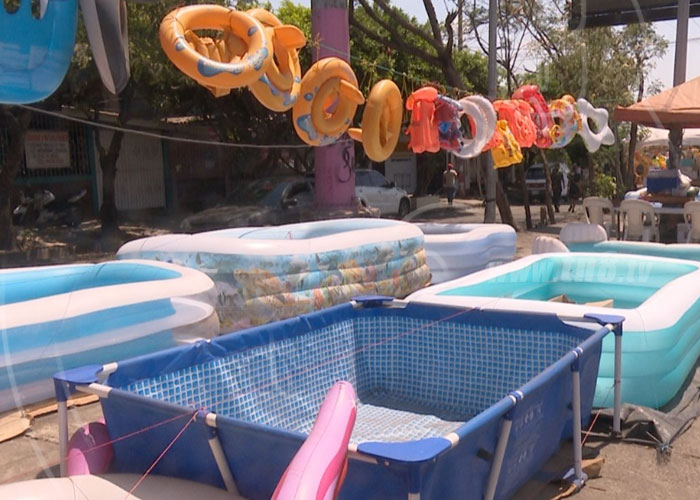 En Managua, en la pista principal de Rubenia, se encuentran instalados vendedores que ofertan piscinas de diversos tamaños a las familias interesadas en disfrutar en sus hogares las vacaciones del período de Semana Santa.