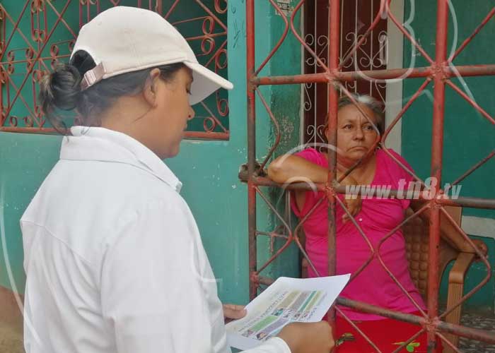 Brigadistas de la salud junto a la red comunitaria del barrio Francisco Aguilar, del distrito VI de Managua, realizaron visita casa a casa para llevar el mensaje de prevención a las familias nicaragüenses ante el coronavirus.