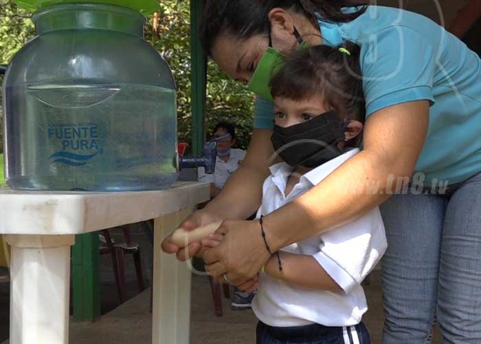 “Estamos tomando todas las medidas para la protección de nuestros niños y el personal que labora, implementamos el lavado de manos desde que los niños acceden al centro. Tenemos recipientes con agua limpia, alcohol en gel, toallas húmedas para la higiene de los niños, tanto los niños como los docentes usan de manera permanente el tapabocas, el distanciamiento social y con toallas limpias y desinfectantes limpiamos todas las áreas donde los niños reciben sus clases, su merienda, donde juegan y donde duermen”, manifestó Berling López, responsable del CDI Masachapa.