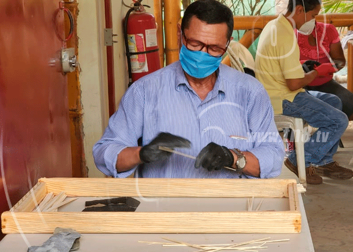 El propietario de un pequeño taller de manualidades, se integró a un ciclo de capacitación en Managua y desde entonces puso su empeño para iniciar a crear artesanías de bambú y realizar combinaciones con otros materiales.