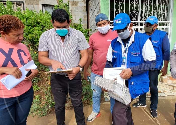 "Vamos a entregar 378 documentos en toda la semana, hoy vamos a entregar 70 documentos entre títulos y solvencia, a igual cantidad de familias, cuál es la importancia, de que un dueño obtenga su beneficio. Esta persona que ya tiene un título, puede hacer cualquier mejora en su casa, (…) reconocer que la familia obtenga este beneficio para que tenga seguridad jurídica sobre el bien que está ocupando, de eso se encarga la Procuraduría General de la República, en llevarle ese derecho a la familia nicaragüense, para que tenga la tranquilidad de verdad en que nadie le va a decir que este terreno no es suyo", manifestó Marlon Cuaresma de la Intendencia de la Propiedad.