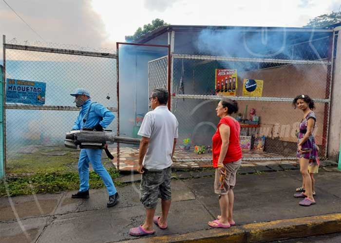 Brigadas médicas continuaron este lunes con la lucha antiepidémica en el barrio Hialeah de Managua donde fumigaron para contener la proliferación del zancudo adulto.