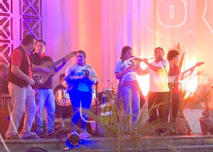 La plaza de la revolución lucia repleta de jóvenes comprometidos con la revolución y que aman ver una Nicaragua digna y soberana. Los asistentes entonaron piezas musicales icónicas de la revolución popular sandinista y bailaron al ritmo de las nuevas canciones que mantienen esa esencia de amor a la patria.