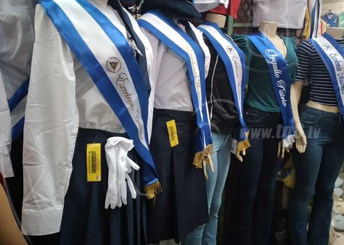 “En este mes de la patria pues tenemos variedad de combos, tenemos faldas, grandes, tenemos la banda, tenemos la corbata, la boina; un paquete que usted puede encontrar. Aparte los zapatos en 500 córdobas, algo favorable y tenemos más gangas todavía para la población. Acordémonos que es el mes de la patria y hay que hacerle honra y gloria a nuestros héroes y una de las maneras es mudando a nuestros jóvenes y nuestros niños para las actividades que se van a realizar y aquí tenemos estos combos”, aseguró el comerciante Guillermo Barreto.