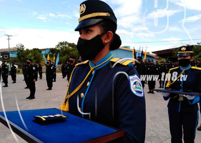 "Prometes ante Dios, ante la patria, ante el pueblo y las familias nicaragüenses, ante nuestros héroes y mártires, respetar la Constitución, las leyes los derechos y las libertades del pueblo y cumplir fielmente las misiones encomendadas principios fundamentales de actuación de la Policía Nacional para defender, la paz la seguridad y la estabilidad de nuestra nación revestidos por el lema de honor, seguridad y servicio”, exclamó el primer Comisionado Francisco Díaz.