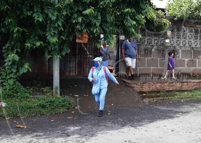 Brigadistas del Ministerio de Salud, MINSA, realizaron la mañana de este jueves una jornada de fumigación y aplicación de BTI en el barrio El Riguero, donde se planteó el ingreso a al menos 500 viviendas para eliminar depósitos potenciales de zancudos.
