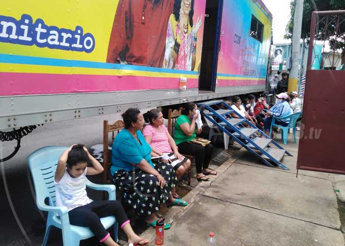 La mañana de este martes fueron los habitantes del barrio Edgard Lang en el Distrito II de Managua quienes acudieron a la clínica móvil a pasar consultas con médicos generales, pediatría, ginecología, medicina natural y también aprovecharon para realizarse exámenes especializados; todo esto de forma gratuita.