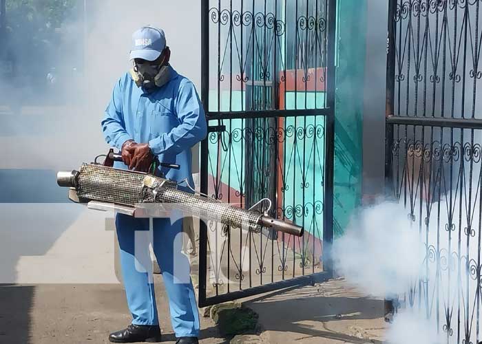Con el objetivo de prevenir las enfermedades del mosquito transmisor como dengue, zika y chikungunya, brigadas de fumigación del Ministerio de Salud (MINSA), este miércoles visitaron a familias del barrio Domitila Lugo, del Distrito IV de Managua.