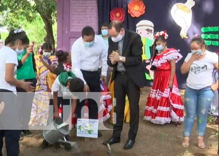 Ministerio de Educación realizó este jueves una jornada de siembra de «árboles de la amistad», con niños estudiantes de la escuela educación especial Melania Morales y el Nuncio Apostólico de Nicaragua.
