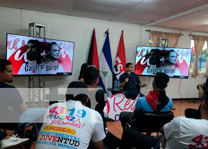 En esta actividad la joven Adriana Urbina, expresó que “Desde la Red de Jóvenes Comunicadores estamos realizando este conversatorio en honor al natalicio del comandante Tomás Borge y el Comandante Fidel Castro, 92 y 96 aniversario, hoy nos acompañan twitteros, también el compañero Luis Guerrero, quienes hablarán de la vida y el legado que estos comandantes dejaron, no solo al pueblo de Nicaragua sino a todos los pueblos latinoamericanos, y cómo fue su aporte y legado para que los jóvenes estemos conociendo de la historia y lo importante que fue”.