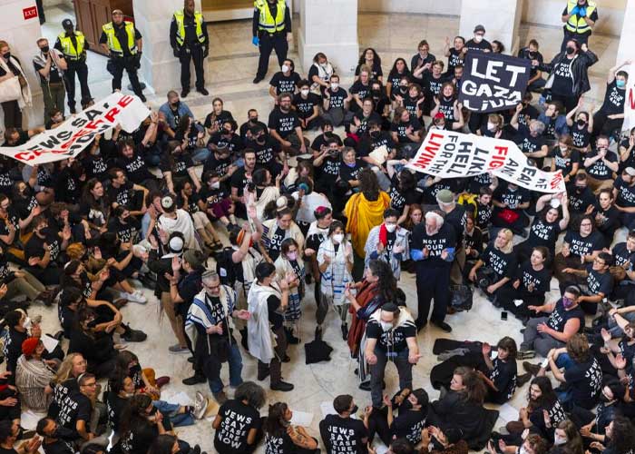 Cerca de 300 arrestos se llevaron a cabo en las proximidades del Capitolio de Estados Unidos luego de una manifestación antisionista en Washington en contra de la escalada de tensiones en Gaza.