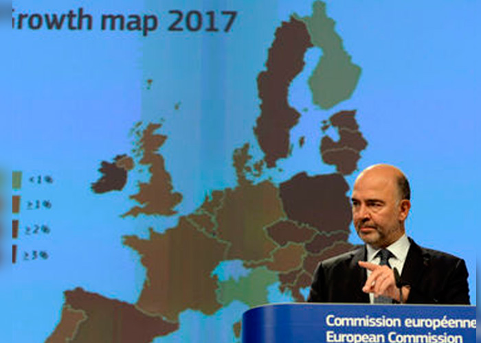 La Comisión Europea aumentó este lunes sus previsiones de crecimiento de la zona euro para 2017 y 2018, aunque subraya la "alta incertidumbre" vinculada a la nueva administración estadounidense de Donald Trump y al Brexit.