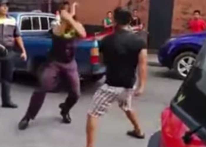 Un habitante de Mazatenango, municipio del departamento de Suchitepéquez de la República de Guatemala, grabó en video una pelea entre un agente de la Policía Municipal de Tránsito, PMT, de la localidad y un piloto de mototaxi.