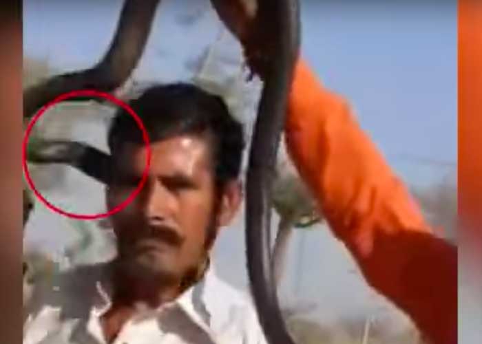 En la grabación se puede observar al encantador, intentando poner a la serpiente alrededor del cuello de un turista. Pero el agitado reptil muerde al hombre en la mejilla, inyectándole una dosis mortal de veneno.