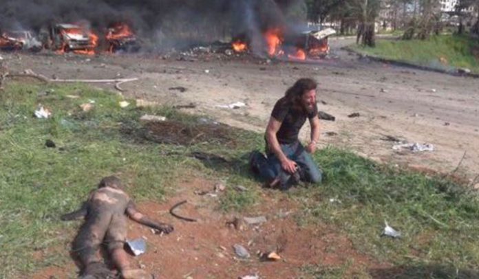 Hay imágenes de la guerra de Siria que quedarán grabadas en el imaginario colectivo. La fotografía, captada tras el atentado del sábado cerca de Alepo, está dando la vuelta al mundo.