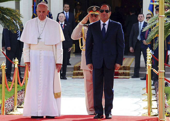 El presidente egipcio, que pronunció un discurso junto a Francisco, alabó el papel de la institución de Al Azhar, la más prestigiosa del islam suní, en hacer frente a las ideologías extremistas.