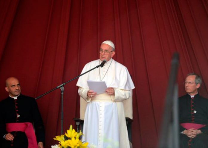 En un estadio del ejército, con capacidad para 30.000 personas, las gradas estaban medio llenas. Junto a las familias que asistieron a la misa, había también monjas vestidas con sus austeros atuendos blancos o grises, así como clérigos franciscanos en sotana marrón.