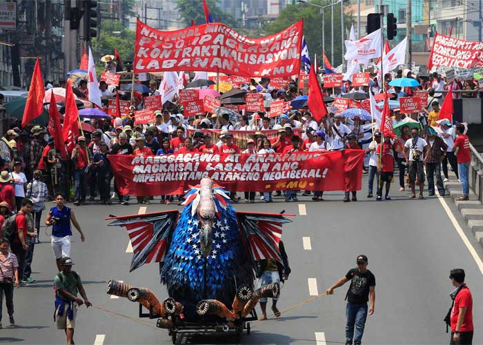 Activistas de izquierdas y obreros se manifestaron y celebraron ruidosas protestas exigiendo un aumento salarial y el final de los contratos temporales que privan a sus titulares de muchos beneficios sociales. Con un sofocante calor veraniego, la multitud reunida en Manila clamó también en contra de los supuestos asesinatos extrajudiciales de la campaña antidroga del presidente del país, Rodrigo Duterte.