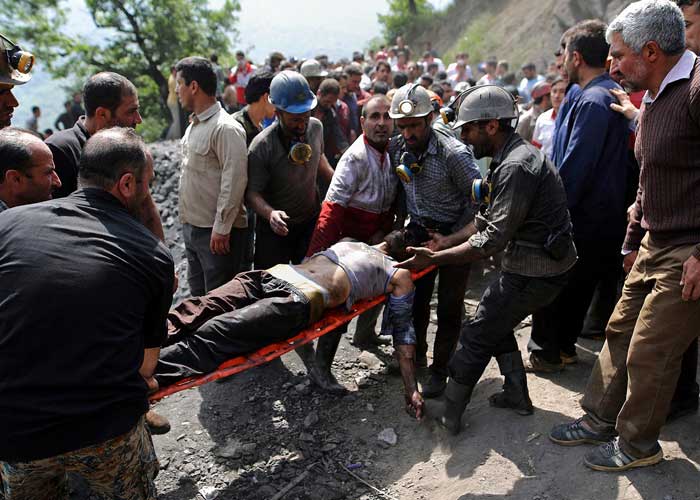 Las imágenes de la televisión pública Irib mostraban la evacuación de mineros heridos, agotados, y la actividad incesante de los servicios de rescate en la entrada de uno de los túneles de la mina.