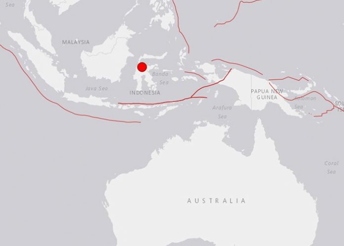 El epicentro fue localizado a 9 kilómetros de profundidad y unos 80 kilómetros al sureste de la ciudad de Palu.