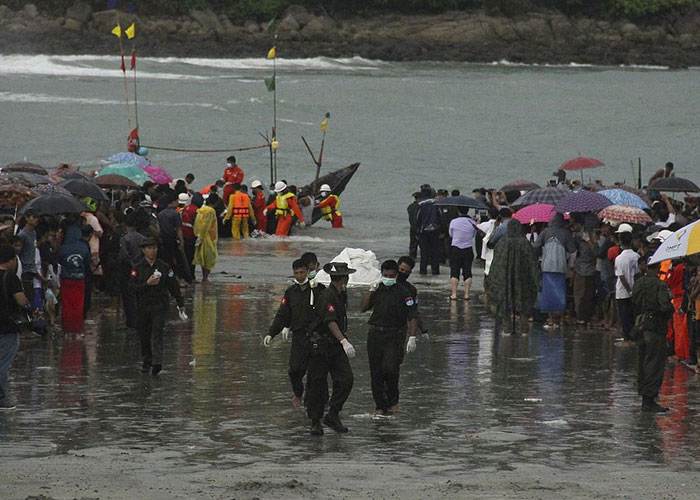 Los cuerpos de un hombre, 20 mujeres y 8 niños fueron transportados hasta la orilla por un barco de Marina birmana que participa en la misión de búsqueda, así como numerosos efectos personales y partes del aparato siniestrado.