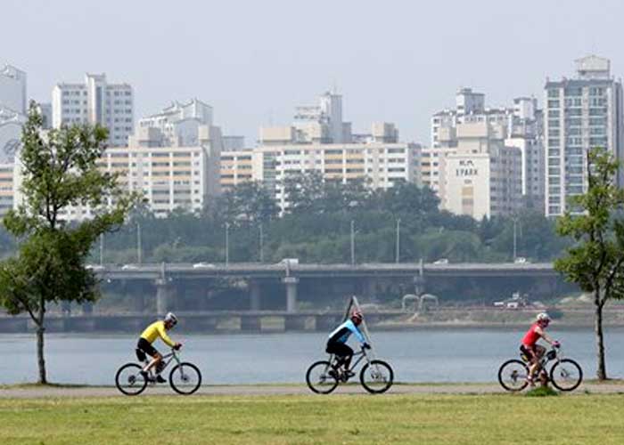 Y aunque menos de 2% de la población de Corea del Sur se desplaza en bicicleta (comparado con 49% de los habitantes de la UE), las vías para bicis que alcanzarán 5.000 kilómetros (3.100 millas) están ganando popularidad, tanto entre los paseantes recreativos de Corea del Sur como entre el creciente número de extranjeros que considera el turismo en bicicleta como una opción para sus vacaciones.