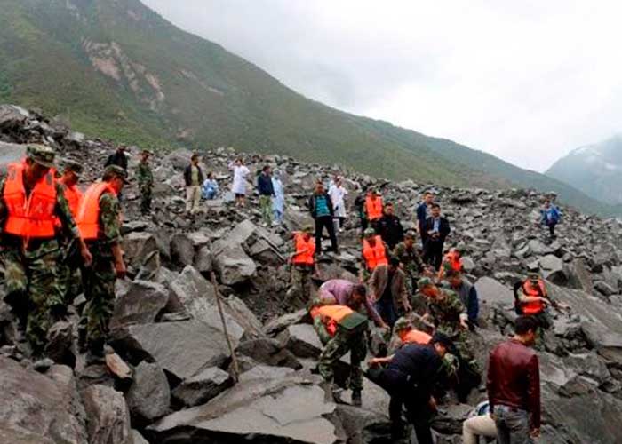 El desprendimiento de la parte alta de una montaña en la prefectura Aba cayó sobre la aldea Xinmo en el distrito de Maoxian en la mañana de este sábado, que bloqueó una sección de dos kilómetros de un río y sepultó 1.600 metros carretera.