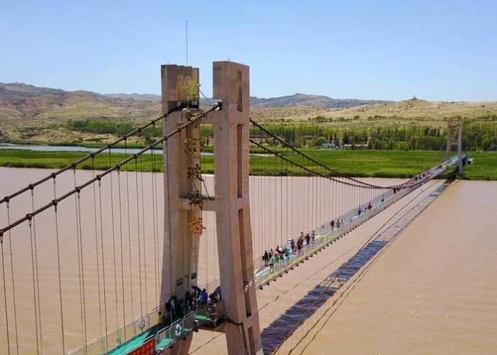 Situado junto a la ciudad de Zhongwei, en la región noroccidental de Ningxia, el puente está situado a 10 metros de altura y tiene 2,6 de anchura.