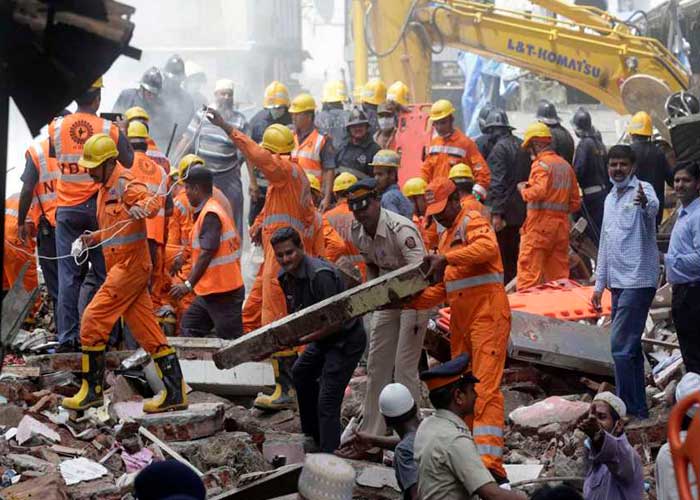 Rescatistas, policías y vecinos ayudaron a sacar a 13 personas de entre los escombros y buscaban a los desaparecidos bajo una enorme montaña de lodo, losas de concreto y vigas retorcidas de metal. El edificio residencial de cinco plantas se encontraba en la bulliciosa zona del Bazar Bhendi, en el sur de Mumbai.