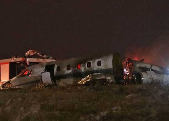 Los cuatro ocupantes, dos pilotos, una azafata y un pasajero, lograron salir por sus propios medios de la aeronave, con heridas leves, aseguró Anadolu.