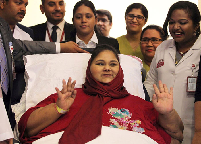 La mujer fue trasladada a Emiratos Árabes Unidos desde la India, donde fue sometida a una operación el pasado febrero, gracias a la cual consiguió bajar de 500 a unos 177 kilos.