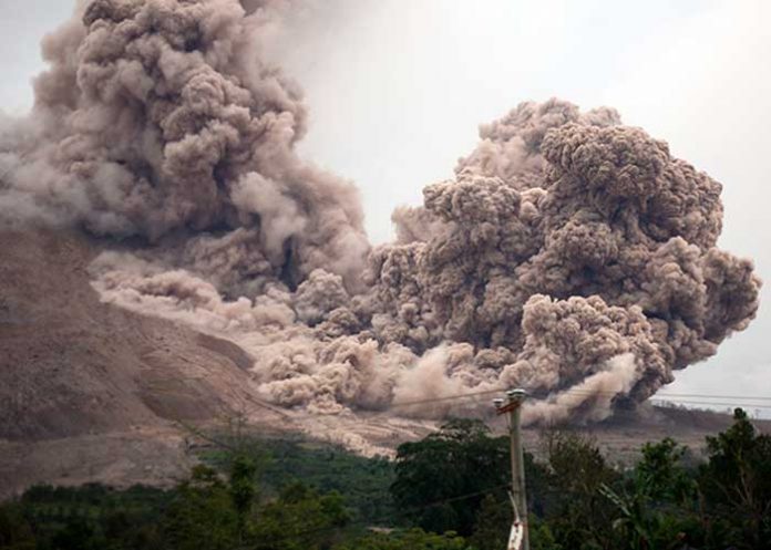 La explosión de Sinabung, con episodios casi diarios, llegó acompañada de lluvia de ceniza, lava, nubes calientes de gas y terremotos, según el director de información de la Agencia Nacional de Gestión de Desastres (BNBP, en indonesio), Sutopo Purwo Nugroho.