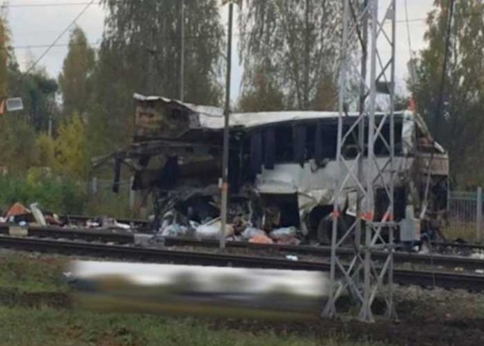 El autobús se quedó varado en un paso a nivel por un fallo técnico, según los primeros reportes. El conductor del tren frenó, pero no logró evitar la colisión.
