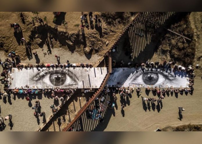 El artista JR construyó una mesa de comedor gigante a ambos lados de la frontera, en la pequeña ciudad mexicana de Tecate, y pintó “los ojos de un soñador” en la parte de arriba. En una instalación especial de un solo día, cada ojo fue cuidadosamente ubicado a cada lado de la frontera. La gente se reunió alrededor de la mesa para disfrutar del sol y de la comida, también a ambos lados de la frontera.
