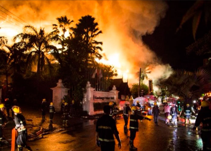 El fuego ha calcinado el 70 por ciento del hotel, propiedad del magnate birmano Tay Za, y uno de los edificios más representativos de Rangún por su estilo colonial y construcción en madera de teca.