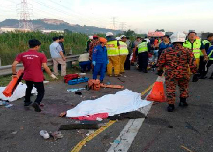 Uno de los vehículos, “que transportaba a 15 trabajadores, no pudo frenar a tiempo y chocó contra el primer autobús, empujándolo hacia el lado derecho de la carretera”, apuntó el jefe adjunto de la policía del distrito Seberang Prai Tengah, Nik Ros Azhan Nik Abdul Hamid.